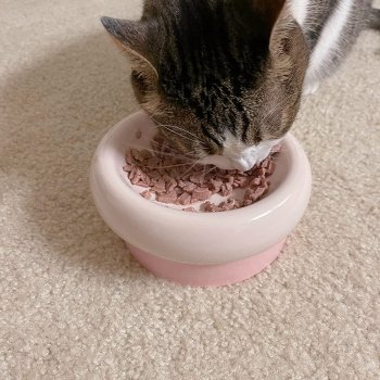 The bowl is perfect and is easy to clean. My cat loves it and has no issue with transitions!