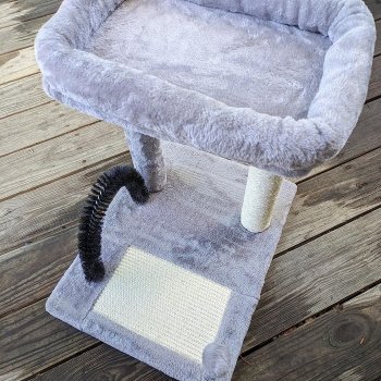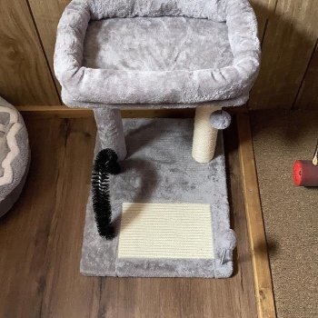 😺😻 What can I say? This mini kitty tower is absolutely purr-fect! Our little fluff ball loves climbing up to the big perch at the top – she practically lives there now. And let me tell you about that scratching post covered in sisal...it’s her new favourite thing (and mine too)! No more shredded curtains or scratched up couches - thank goodness 🙏👍 Also really digging this self-grooming brush feature; super handy since our girl isn't fond of regular brushing sessions. All things considered, we're very happy customers!
