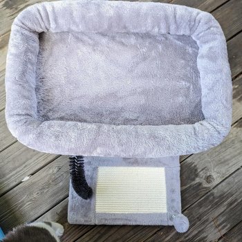 I’ve been through a few sisal scratching posts for our six cats. This one arrived today, and I was surprisingly impressed with the quality of the connectors of each piece, the metal spring for one toy, and the rigidity of the bristled hoop with its anchoring setup. The removable “pillow top” is idea for when (not if) one of the cats burfs in it. Very nice WIDE band of this top goes on like a fitted sheet. I’m so pleased I’m about to order a second one, as the cats didn’t let me finish assembling it before they were trying to test it out.