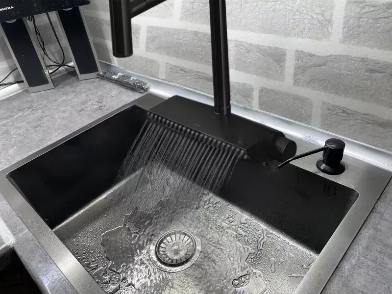 Introducing a sleek addition to your kitchen’s ensemble, a faucet that blends sophistication with functionality. Our Contemporary Black Brass Waterfall Kitchen Faucet with Pull-Out Sprayer is more than just a faucet—it’s a centerpiece that speaks volumes about your taste. With its polished surface and contemporary design, it stands out in any kitchen setting, making it the perfect match for both modern and traditional décor.