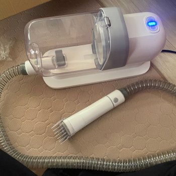This grooming kit is a lifesaver! It's so quiet, my dog doesn't even flinch. I love that the hair goes straight into the dust cup - no more mess to clean up. 🐶👍
