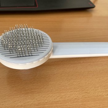 Super cute and handy! Soft bristles so doesn’t hurt my cat! My cat LOVES this brush so so much! Super easy to clean with the clicker button. 100% worth your money!