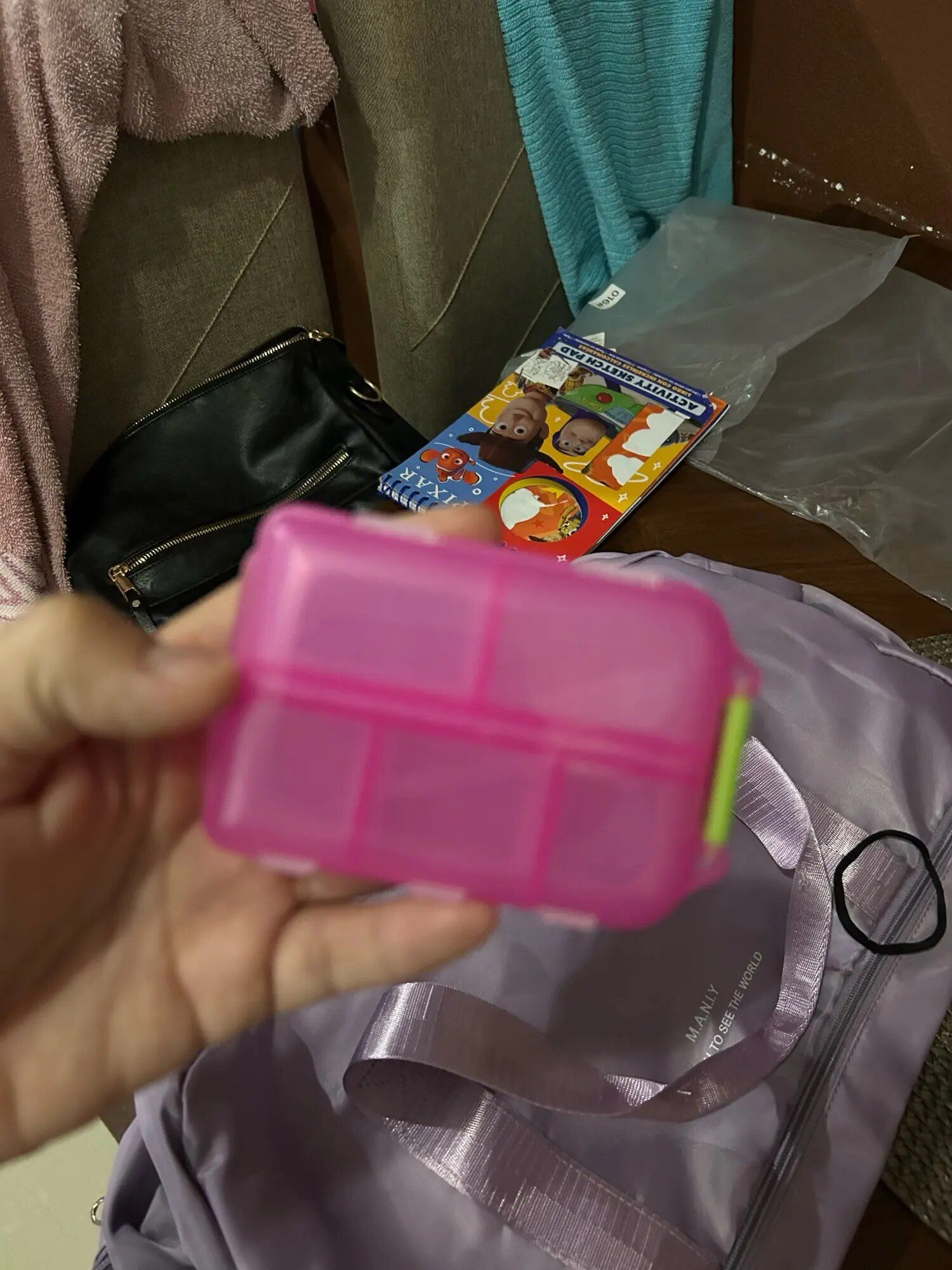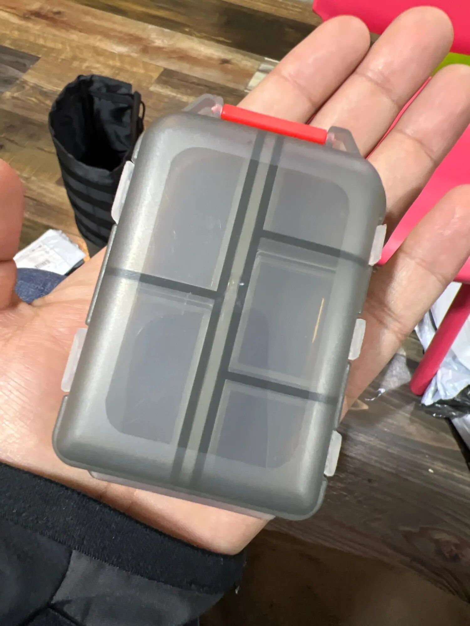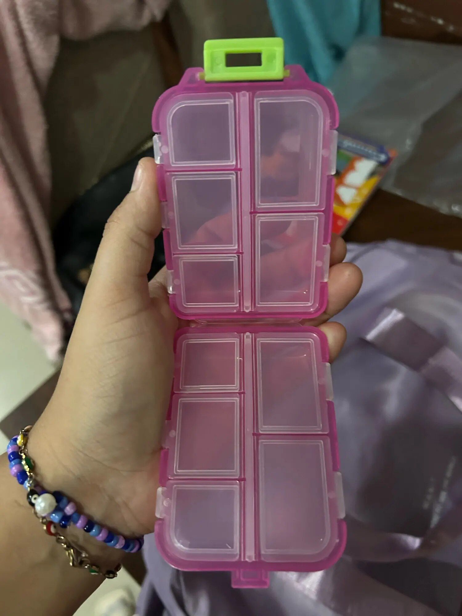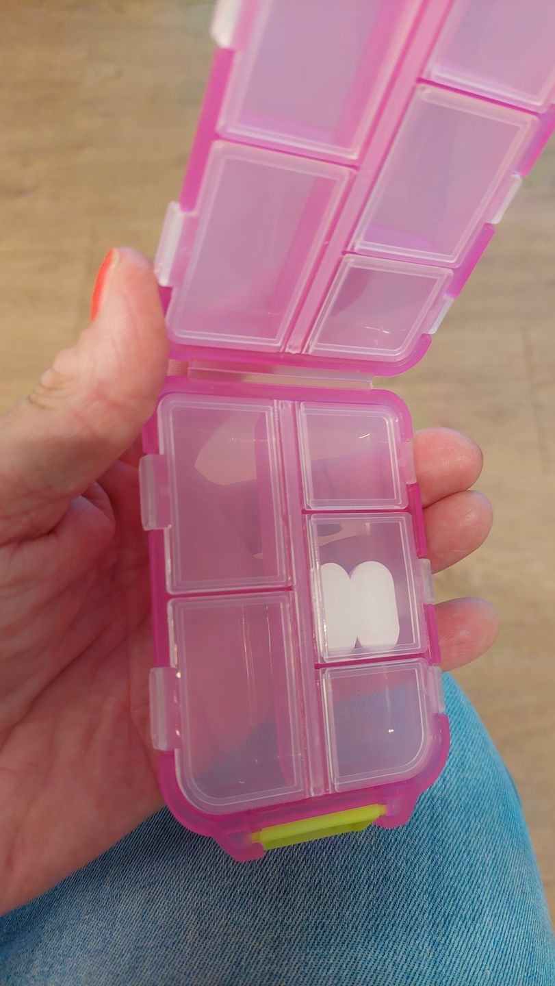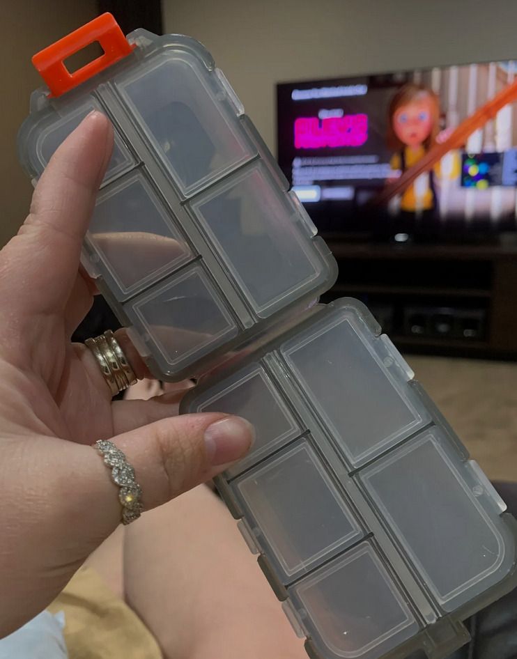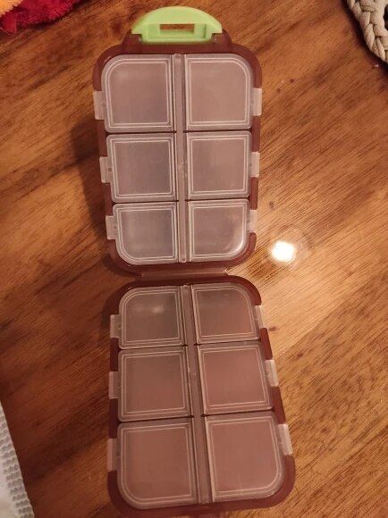 I adore this versatile pill box. Its numerous compartments make it suitable for more than just pills, and its size is just right—not too large to fit comfortably in a purse. I carry mine with me constantly. In addition to holding pills, it serves as a handy storage spot for small items like buttons, ensuring they won't get lost. The flexibility of the compartments allows you to store whatever you need, making it perfect for coordinating with different color schemes or organizing various items.