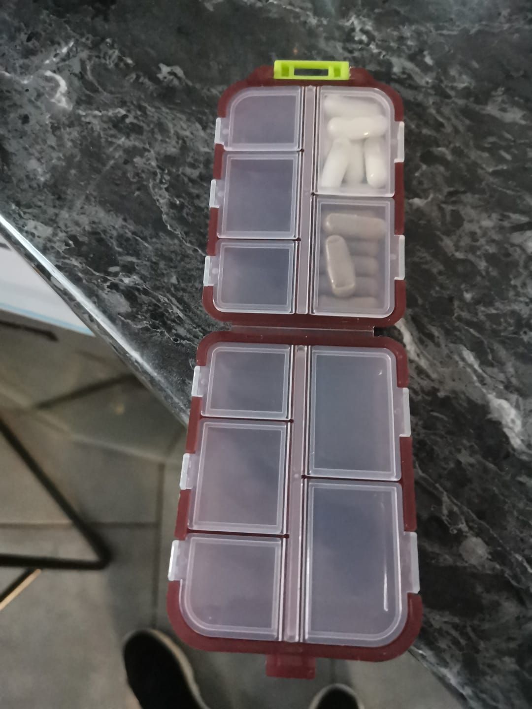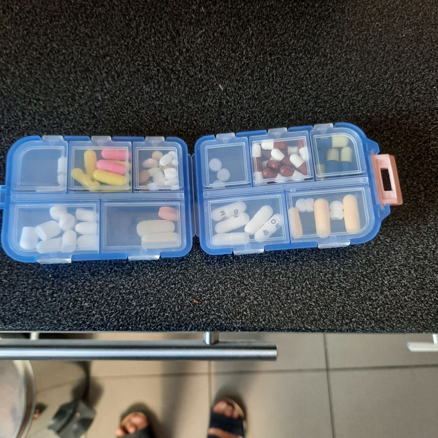 Unfortunately, the open sections can't accommodate my last vitamin, and it's frustrating that they're not all the same size.